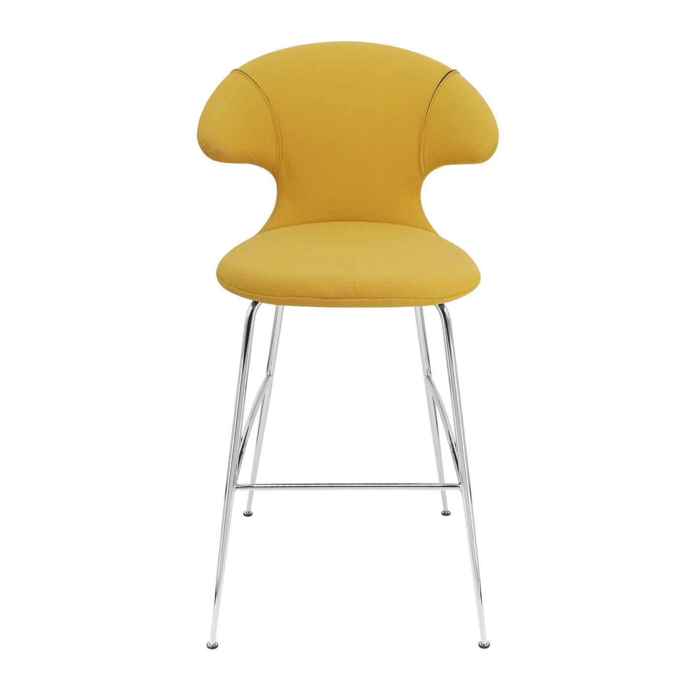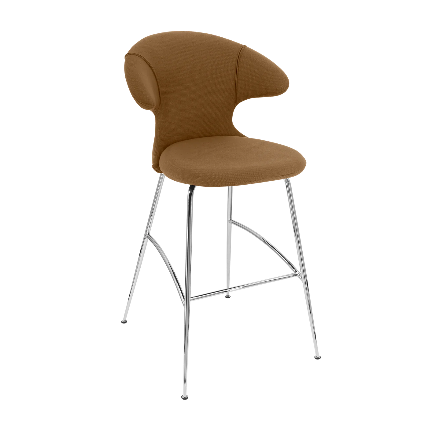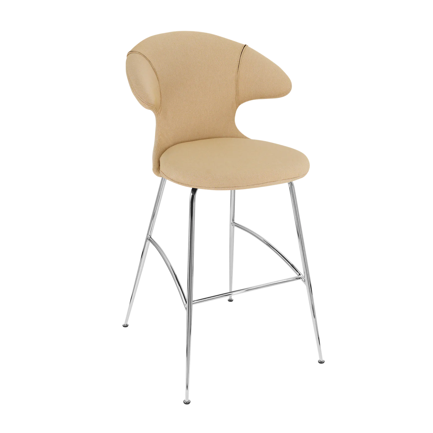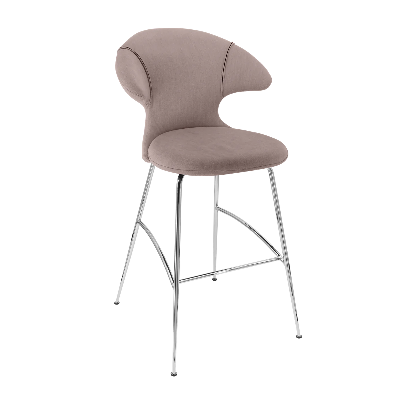 Egy kényelmes ülőhely a legjobb kiindulópont egy jó beszélgetéshez. A Time Flies bárszék feldobja a konyhapult vagy egy étterem bárjában folytatott beszélgetés színhelyét. A stabil háttámla és a lábtartóval ellátott lábak kombinációja nemcsak stílusos és rugalmas ülőalkalmatossággá, hanem kényelmessé is teszi a széket, több olyan környezetben is használható, ahol szükség van egy kis extra magasságra. A szék művészi körvonalú, karfákba simuló háttámlával tervezett, minden szögből puha és stabil háttámlát biztosítva. A Time Flies bárszék sárgaréz, króm és fekete lábakkal kapható a 100%-ban újrahasznosított Horizons textilhuzattal.