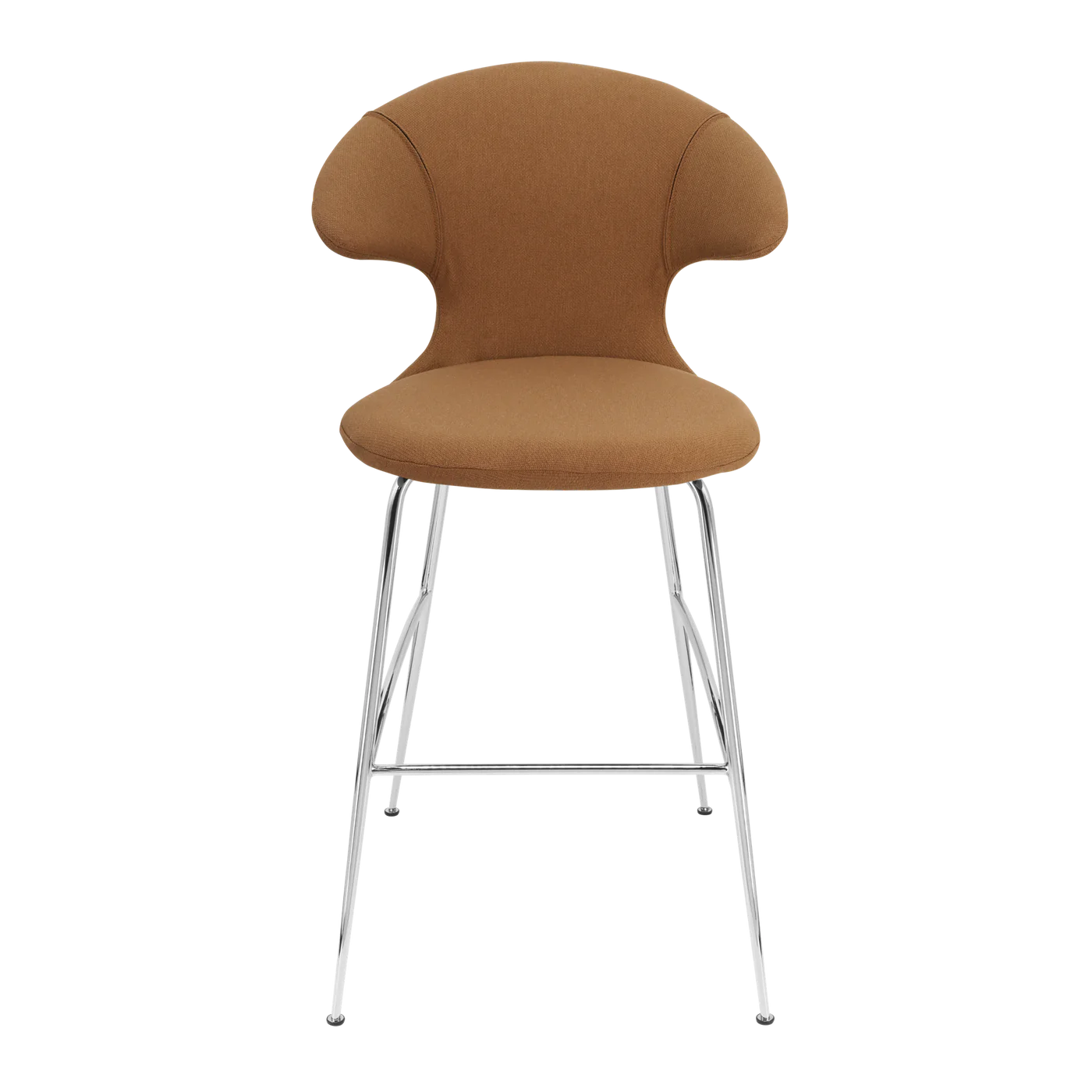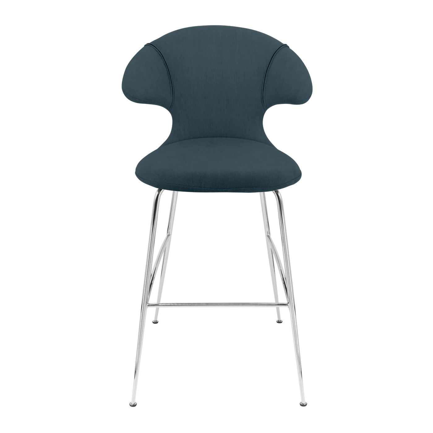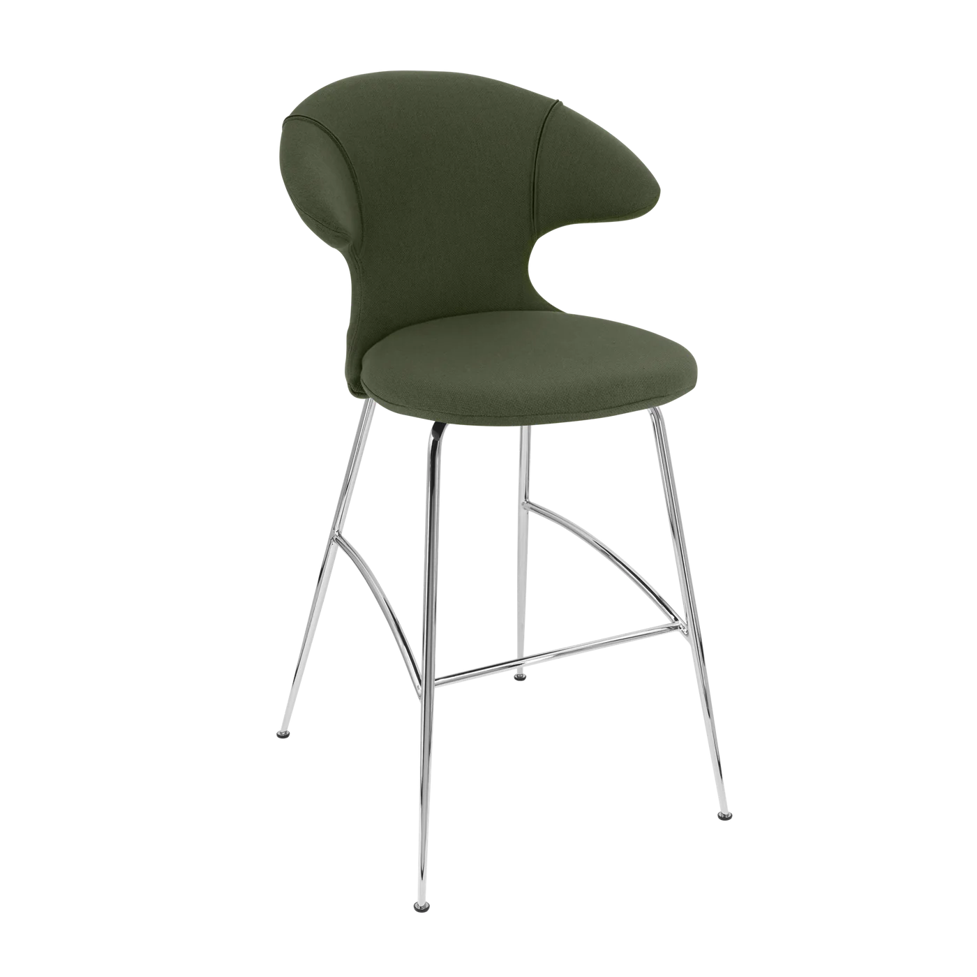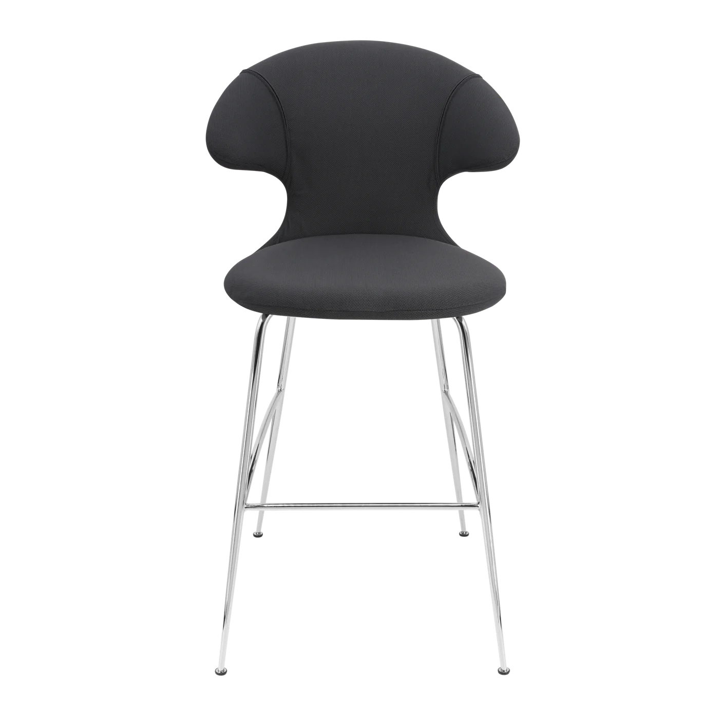 Egy kényelmes ülőhely a legjobb kiindulópont egy jó beszélgetéshez. A Time Flies bárszék feldobja a konyhapult vagy egy étterem bárjában folytatott beszélgetés színhelyét. A stabil háttámla és a lábtartóval ellátott lábak kombinációja nemcsak stílusos és rugalmas ülőalkalmatossággá, hanem kényelmessé is teszi a széket, több olyan környezetben is használható, ahol szükség van egy kis extra magasságra. A szék művészi körvonalú, karfákba simuló háttámlával tervezett, minden szögből puha és stabil háttámlát biztosítva. A Time Flies bárszék sárgaréz, króm és fekete lábakkal kapható a 100%-ban újrahasznosított Horizons textilhuzattal.