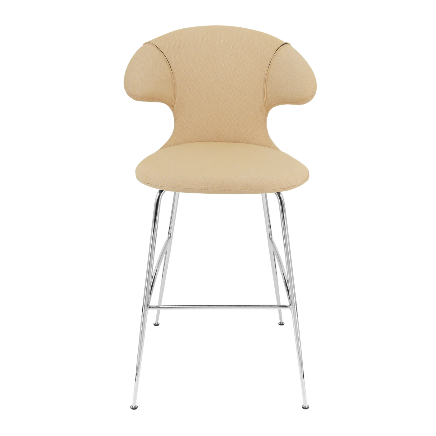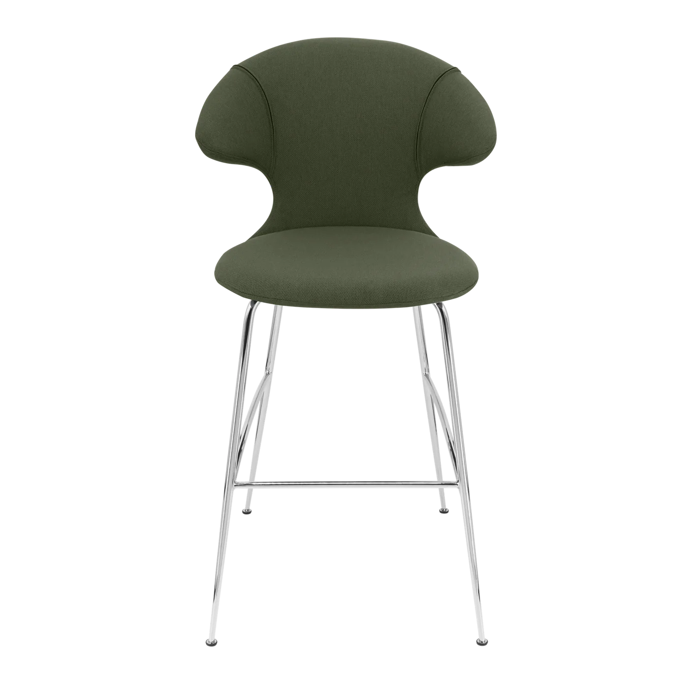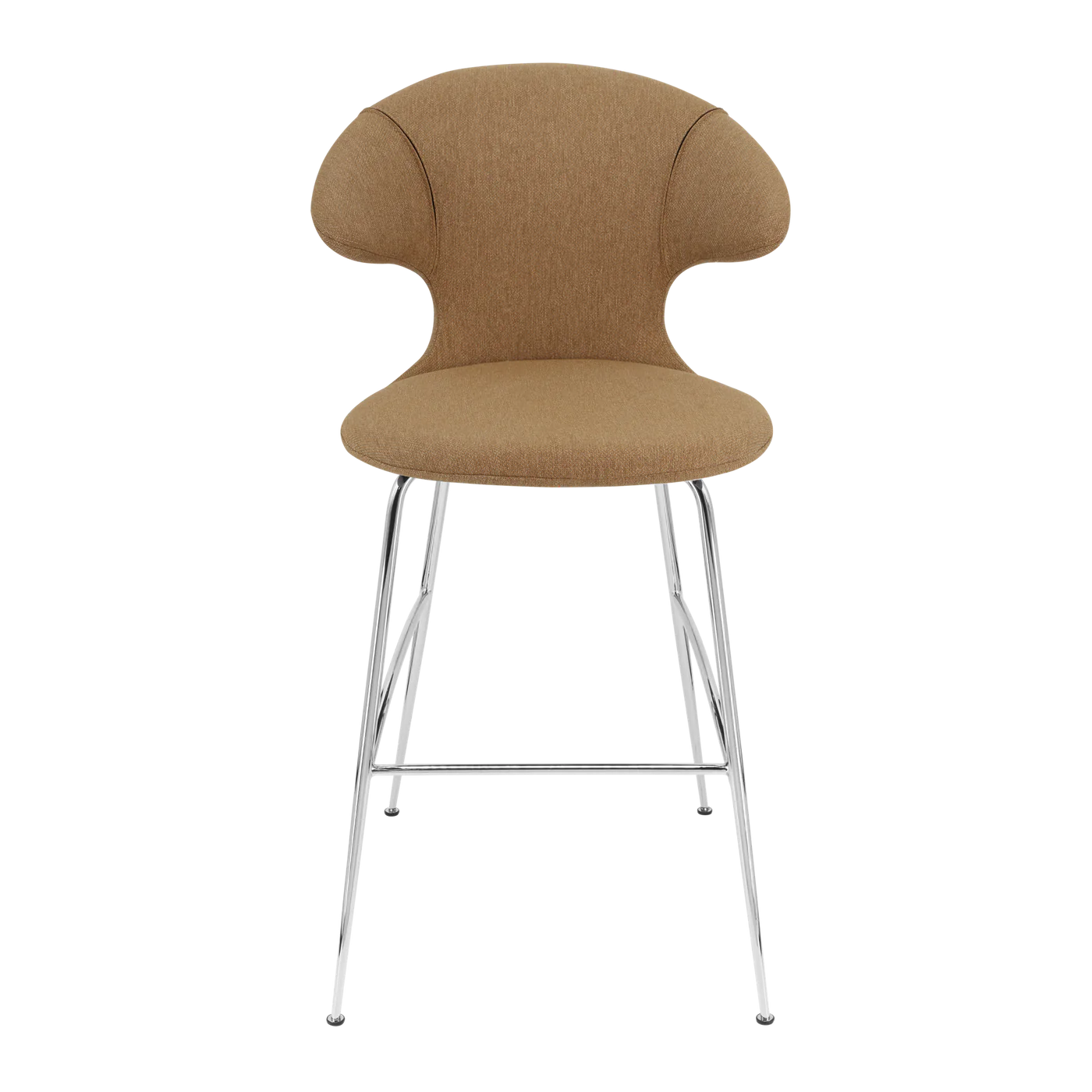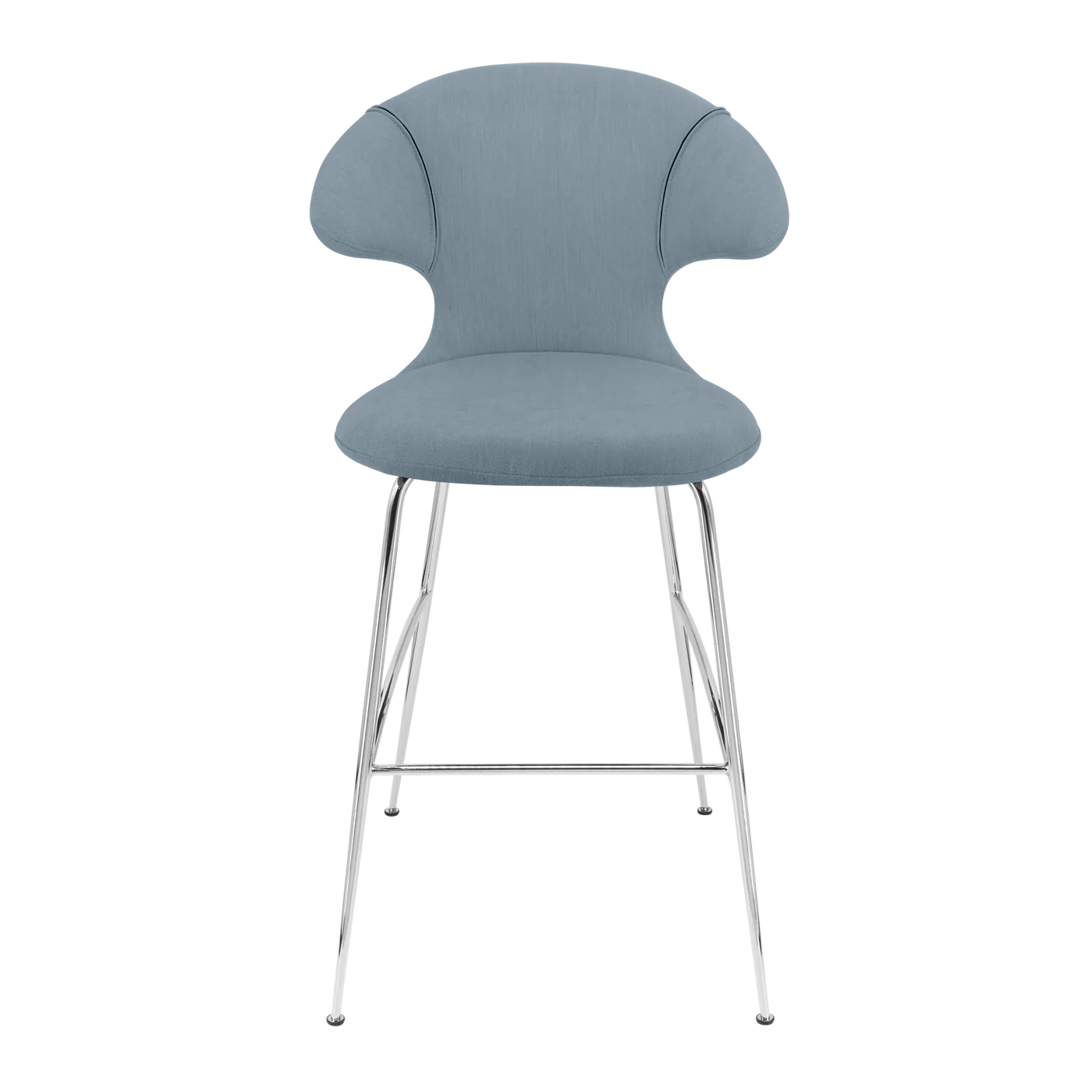 Egy kényelmes ülőhely a legjobb kiindulópont egy jó beszélgetéshez. A Time Flies bárszék feldobja a konyhapult vagy egy étterem bárjában folytatott beszélgetés színhelyét. A stabil háttámla és a lábtartóval ellátott lábak kombinációja nemcsak stílusos és rugalmas ülőalkalmatossággá, hanem kényelmessé is teszi a széket, több olyan környezetben is használható, ahol szükség van egy kis extra magasságra. A szék művészi körvonalú, karfákba simuló háttámlával tervezett, minden szögből puha és stabil háttámlát biztosítva. A Time Flies bárszék sárgaréz, króm és fekete lábakkal kapható a 100%-ban újrahasznosított Horizons textilhuzattal.