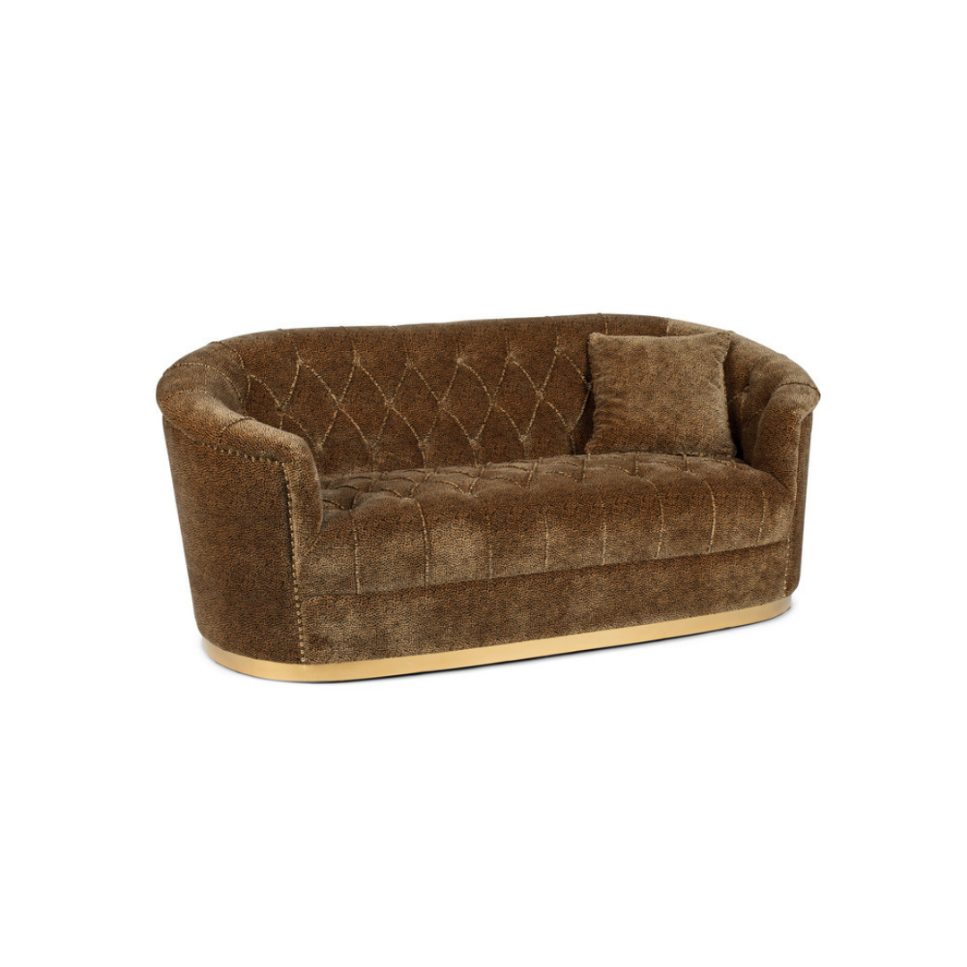 A Bold Monkey Too Pretty To Sit On 2 személyes kanapé szegecses szegéllyel, gombos varrásokkal, és arany színű fém kerettel rendelkezik. A párduc mintás bársony kárpitozás merész, ugyanakkor elegáns stílust kölcsönöz, a széles kailakítás, és a puha szivacsok pedig kényelmes használatot nyújtanak.