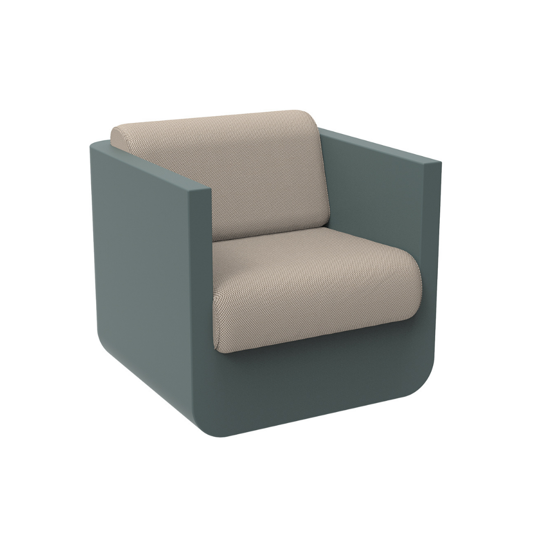 Az Ulm kerti fotel váza polietilén gyantából készült, mely 100%-ban újrahasznosítható, és rendkívül tartós. Minimalista megjelenése miatt garantáltan illeszkedni fog bármilyen kültéri helyszínre, ahol a stílus, és a kényelem is fontos. Egyedi gyártásra készül, így szabadon választhatod ki a fotel, és a szivacsok színét is. Különlegessége, hogy az ICE WHITE színű változathoz beépített LED világítás is rendelhető.