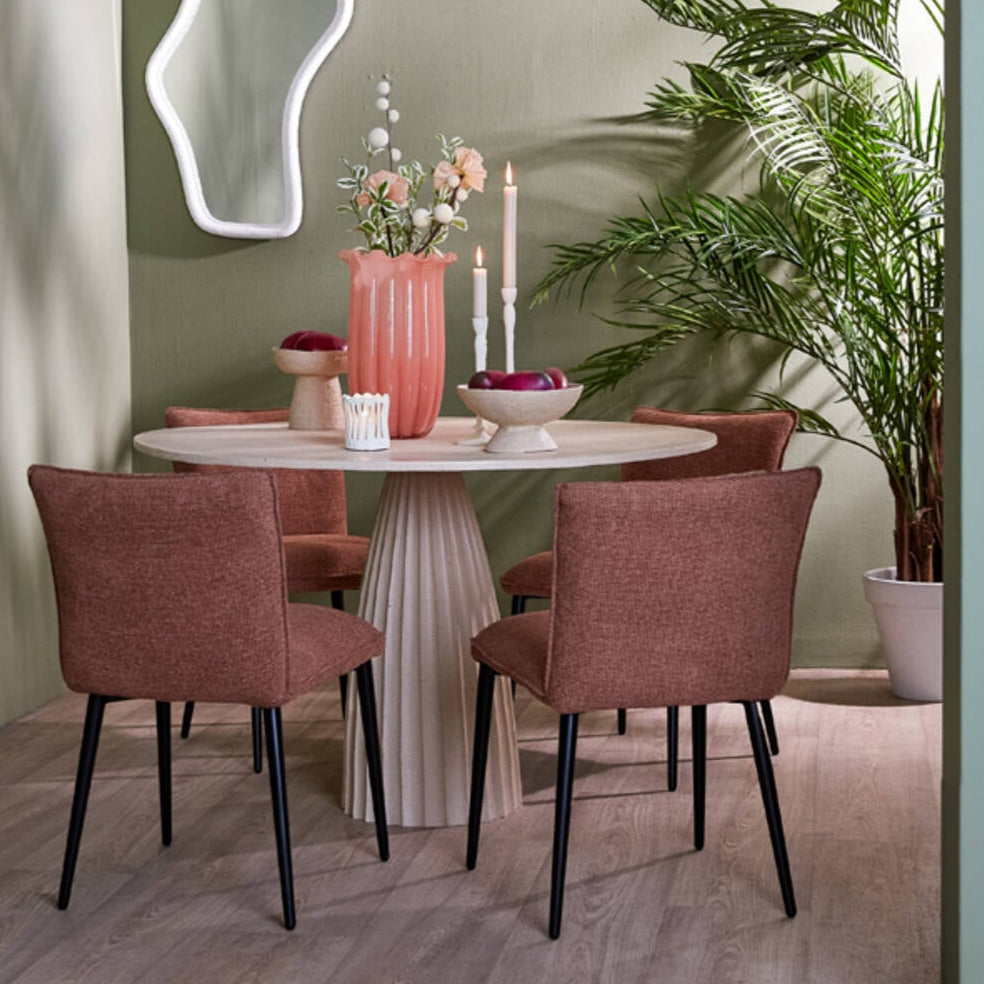 A Vadeni szék egy látványos bútordarab, amely minimalista háttámlájával, illetve vastag párnájával maximális kényelmet biztosít. A különböző színekben elérhető, puha szövet kárpitozás gyönyörűen kiegészíti a fekete fémből készült lábakat és vázat, így könnyedén illeszkedik minden modern enteriőrbe.