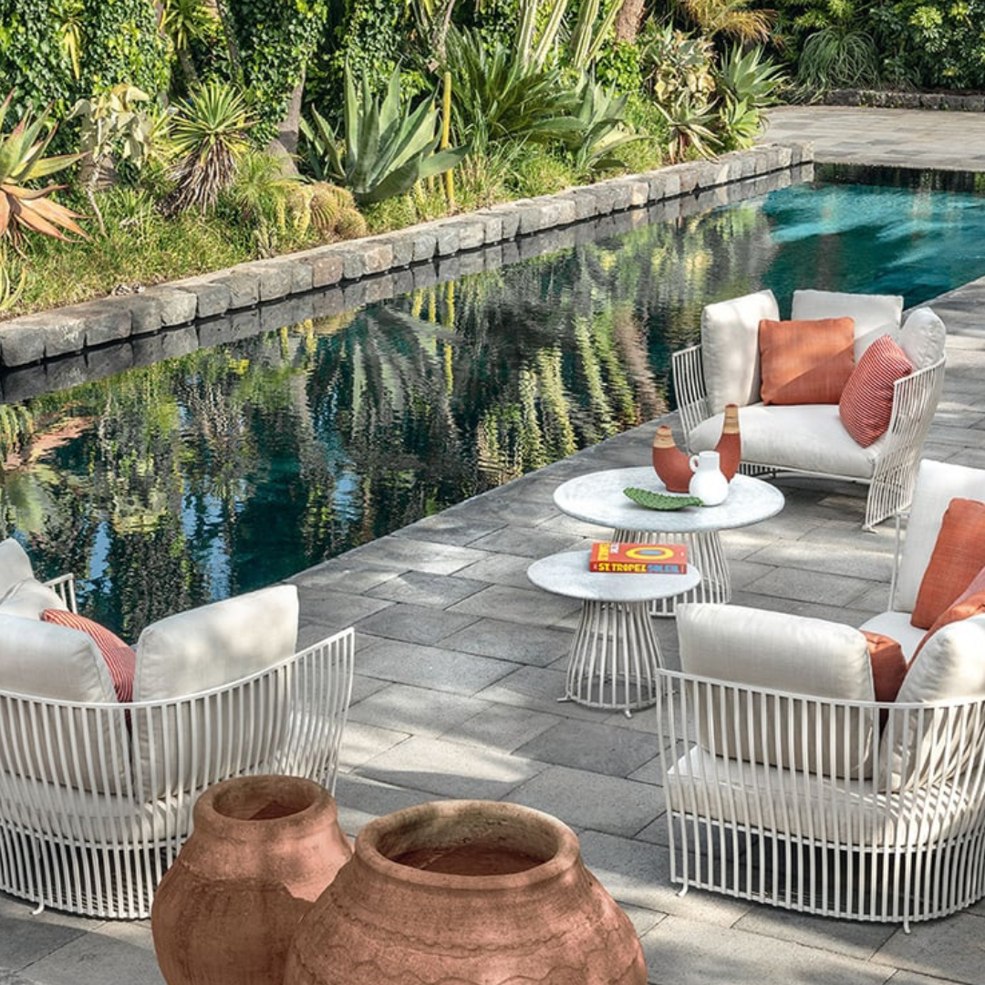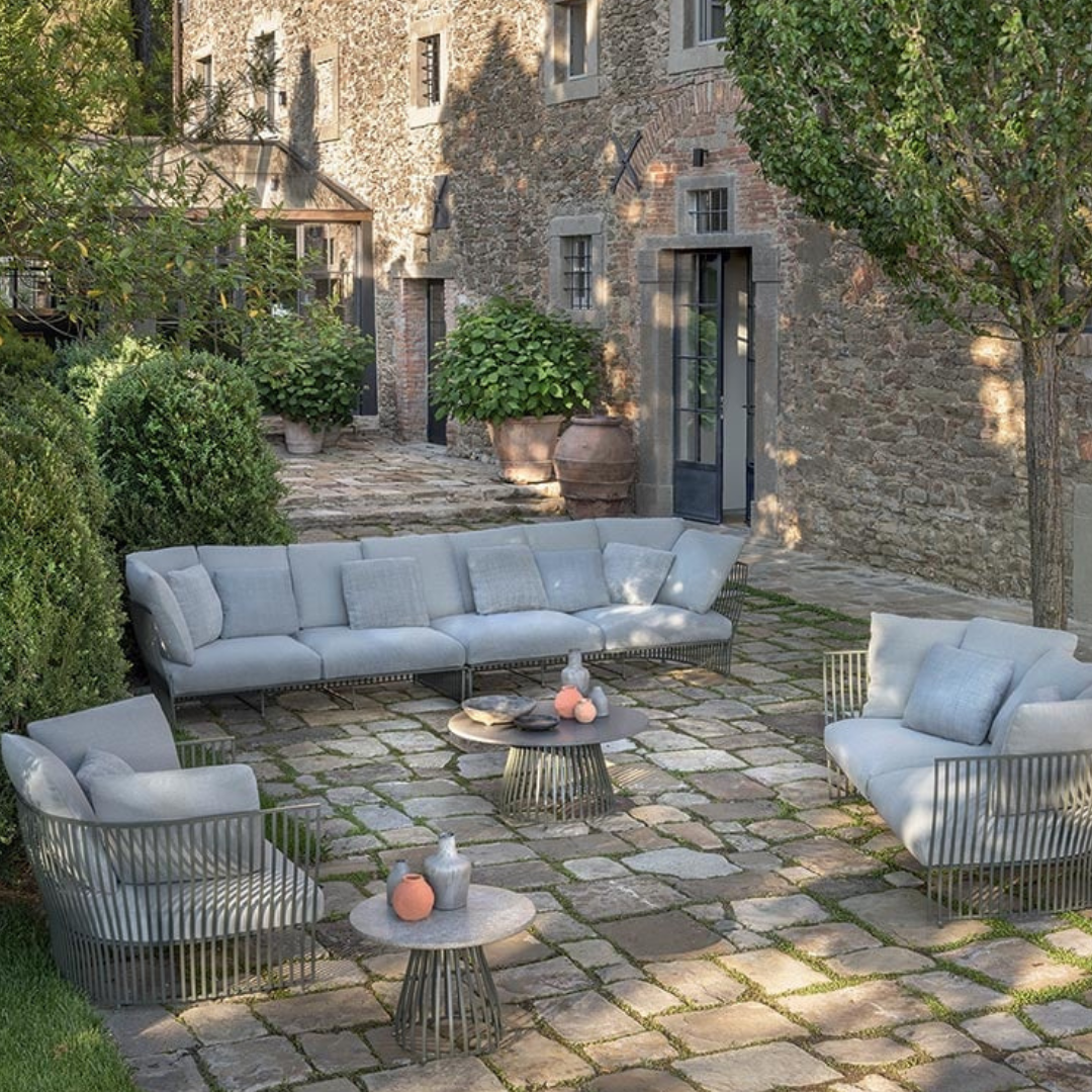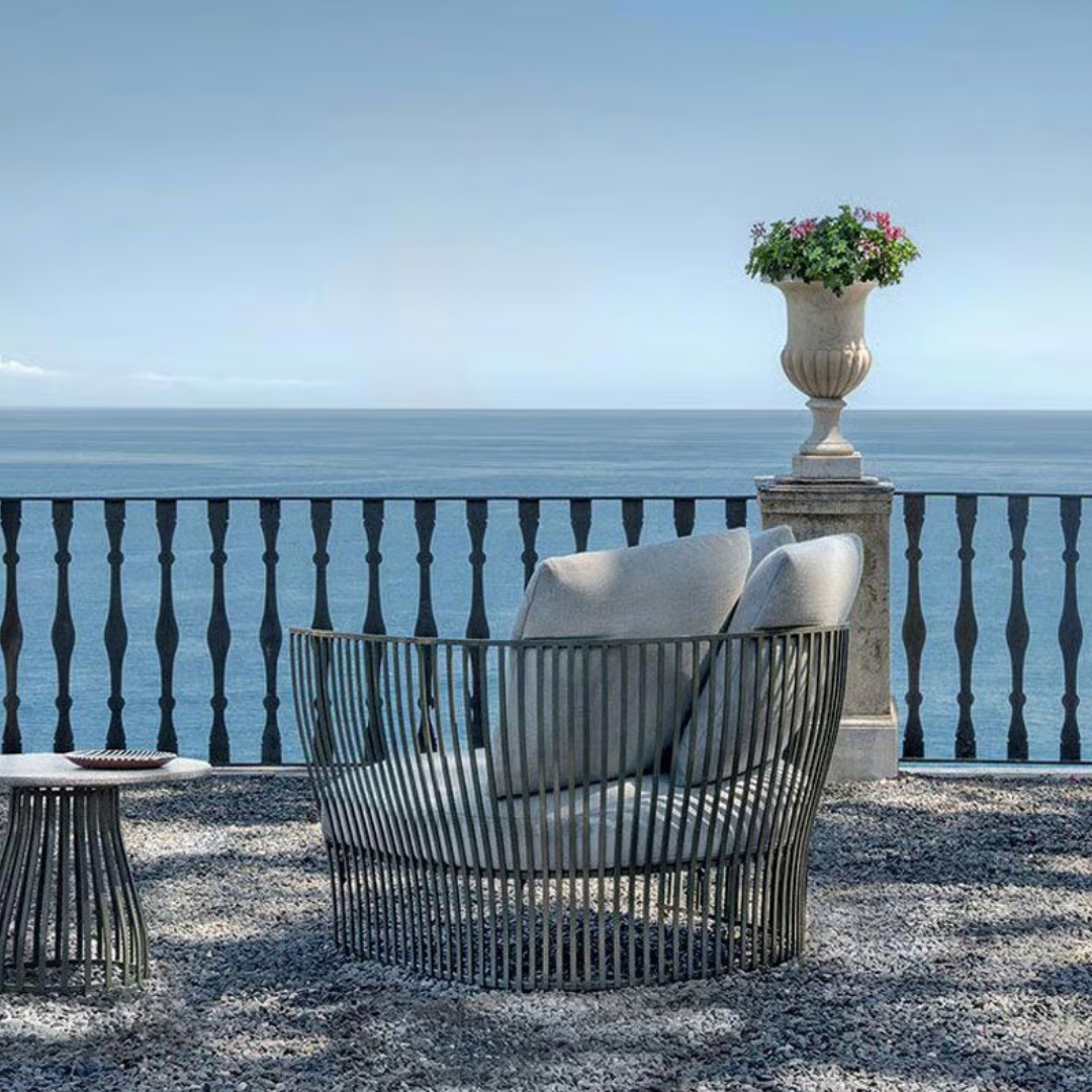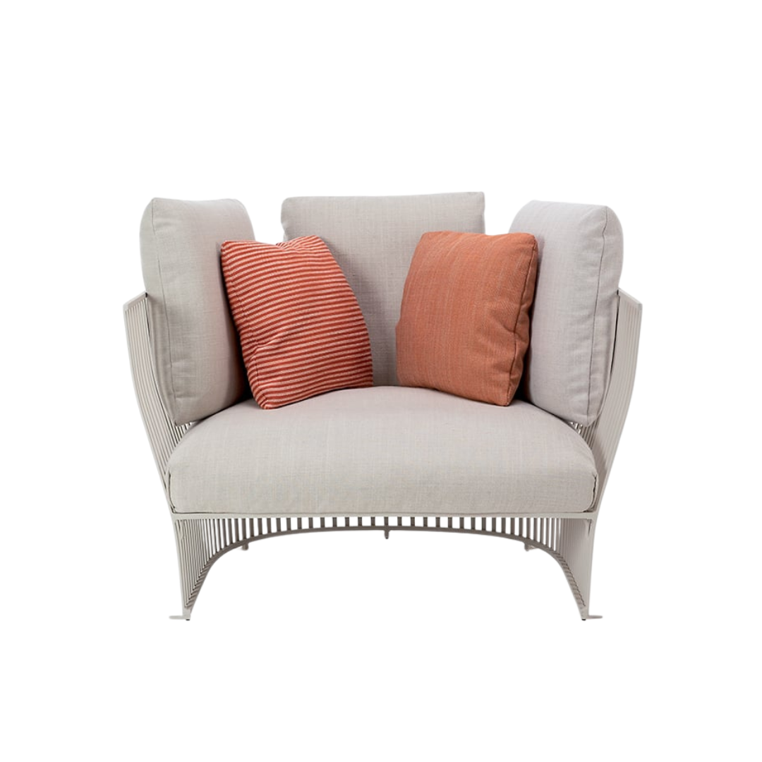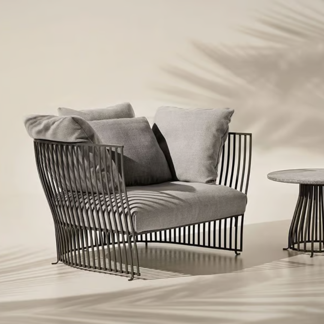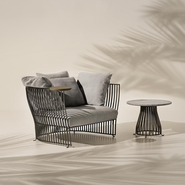 Vigyél kényelmet és stílust külterekbe a Venexia kerti fotellel. Ez a modern formavilágú kerti ülőalkalmatosság hangulatos és egyedi hatást kölcsönöz kertednek, teraszodnak vagy esetleg erkélyednek. 2 különböző kárpittal és 2 színben választható fém vázzal és opcionálisan beépített tálcával elérhető, így tökéletes darab a szabadban való pihenéshez. Tartós, időjárásálló anyagból, acélból készült, ami ideális kültéri használatra, miközben puha és kényelmes marad. Mérete: 110x92x69 cm. Kombináld a Venexia kollekció többi tagjával.