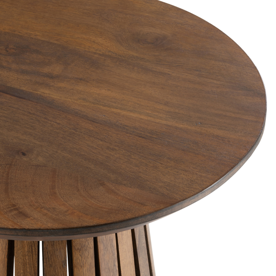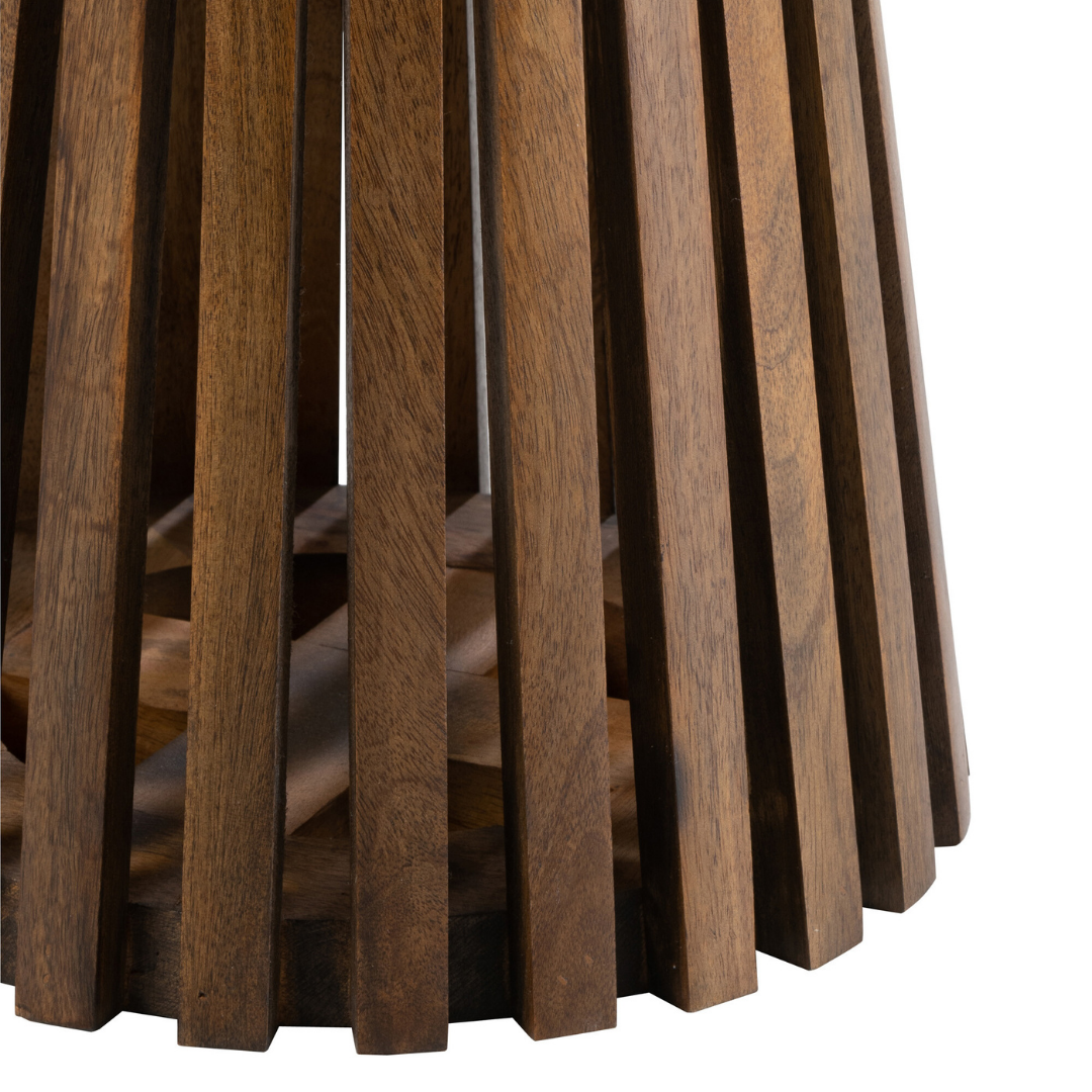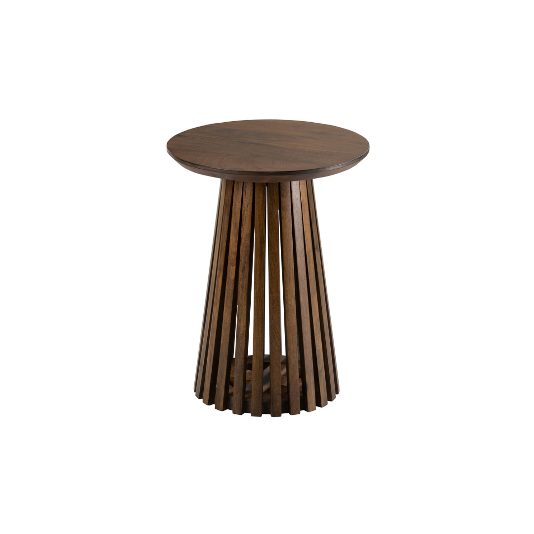 A Vincent lerakóasztal egy stílusos és különleges bútordarab, amely tökéletes kiegészítője lehet bármely modern vagy klasszikus enteriőrnek. Az asztal világosbarna, vagy sötétbarna mangó fából készült, amely nemcsak tartós, hanem természetes megjelenést is kölcsönöz neki. Az asztallap átmérője 40 cm, így ideális helyet biztosít italok, könyvek vagy dísztárgyak számára. A lécekből kirakott láb szerkezet nemcsak a stabilitást biztosítja, hanem egyedi karaktert is ad az asztalnak.