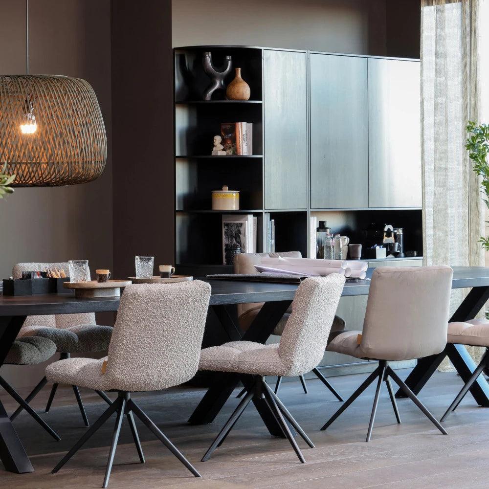 Ez a modern és kényelmes szék tökéletes választás a stílus és a kényelem szerelmeseinek. A szék kárpitja 100% poliészter bársony szövetből készült, míg váza festett fekete fém, biztosítva ezzel a stabilitást és a hosszú élettartamot. Kényelmes ülése és elegáns megjelenése egyaránt vonzóvá teszi mindennapi használatra. Ideális választás bármely belső térbe, legyen az otthon vagy iroda.
