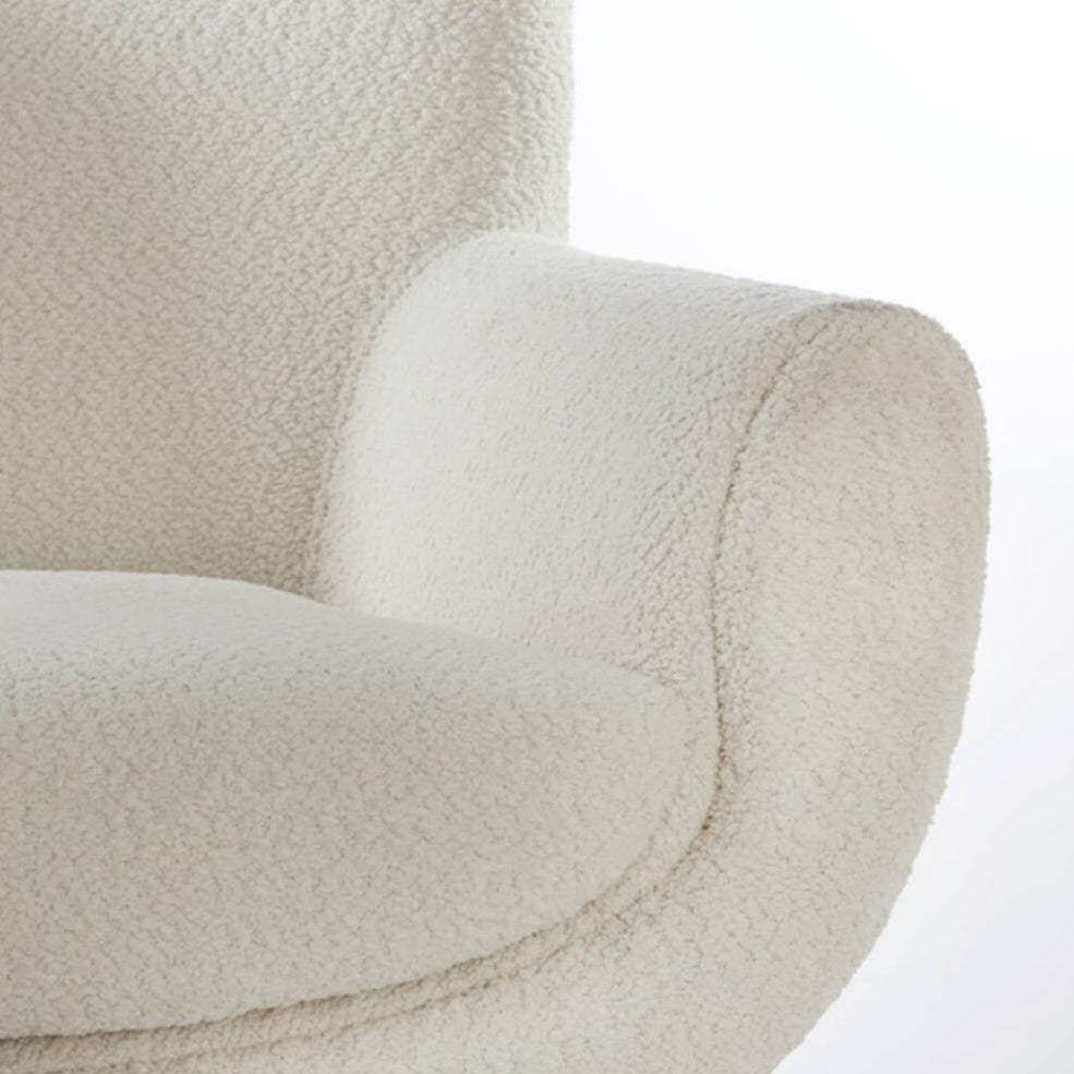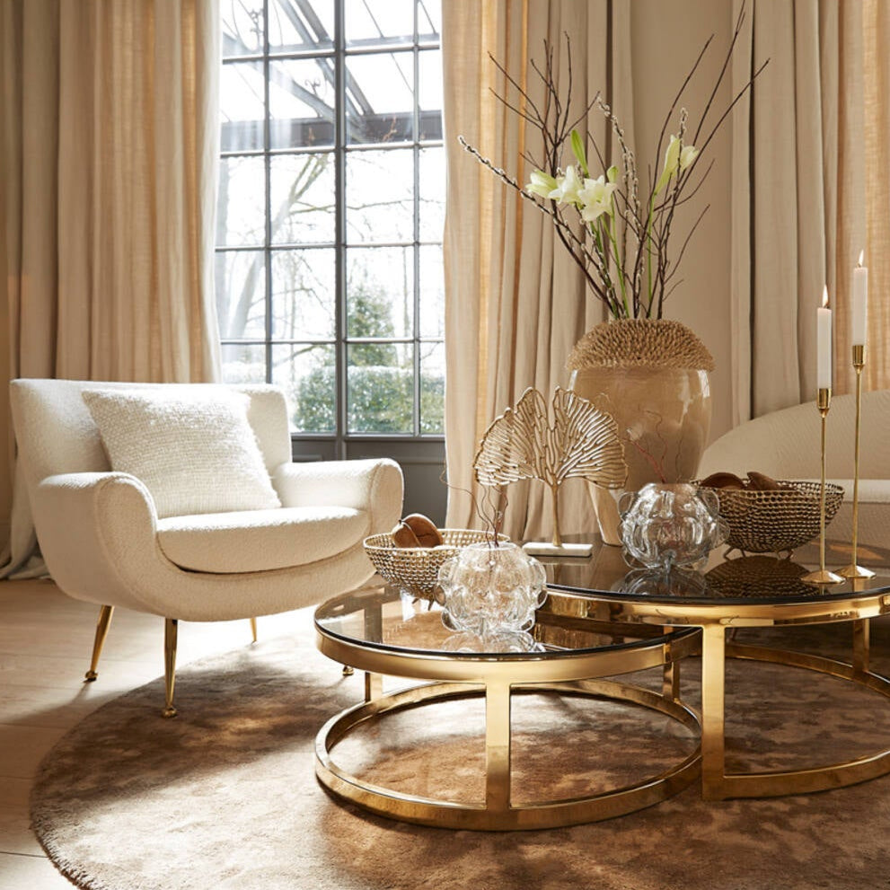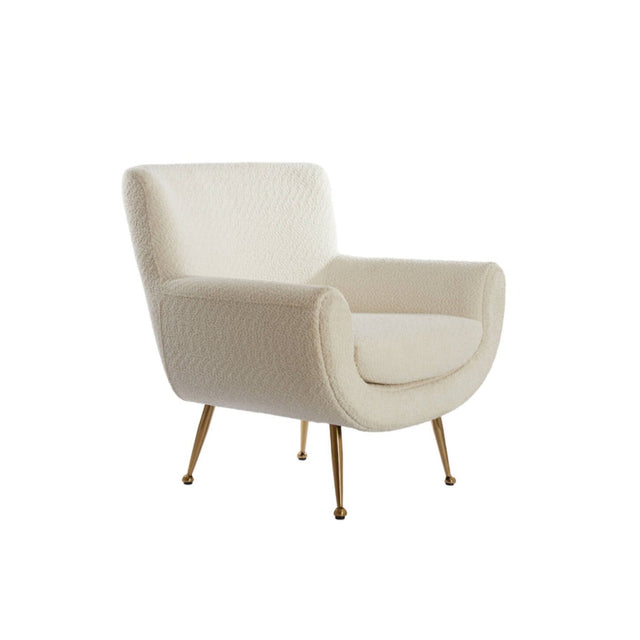 A Vinstra fotel egy egyedi bútordarab, amely különleges kialakításával modern és kifinomult hangulatot visz a belterekbe. Fehér színű, divatos buklé kárpitozása és arany színű fém lábazata amellett, hogy tökéletesen kiegészítik egymást, gyönyörűen kiemelik környezetéből, így könnyedén illeszkedik minden enteriőrbe. Kiválóan illeszkedik a modern és letisztult stílusban berendezett helyiségekbe.