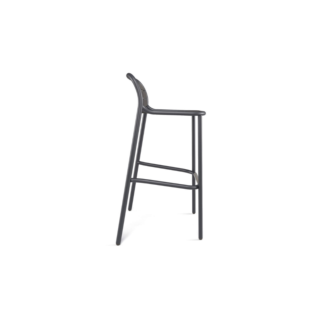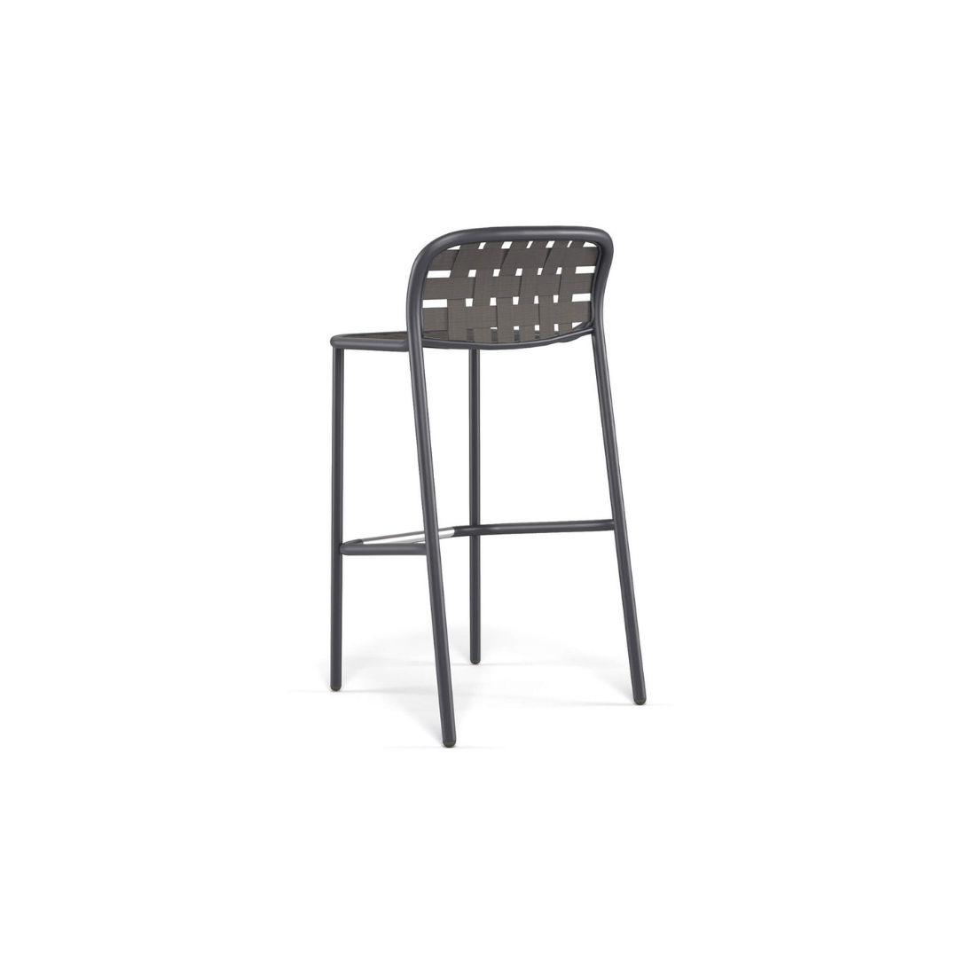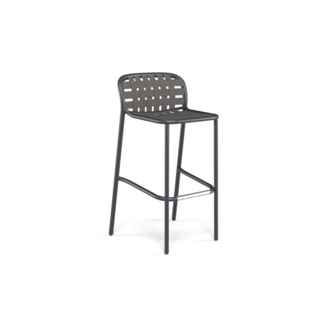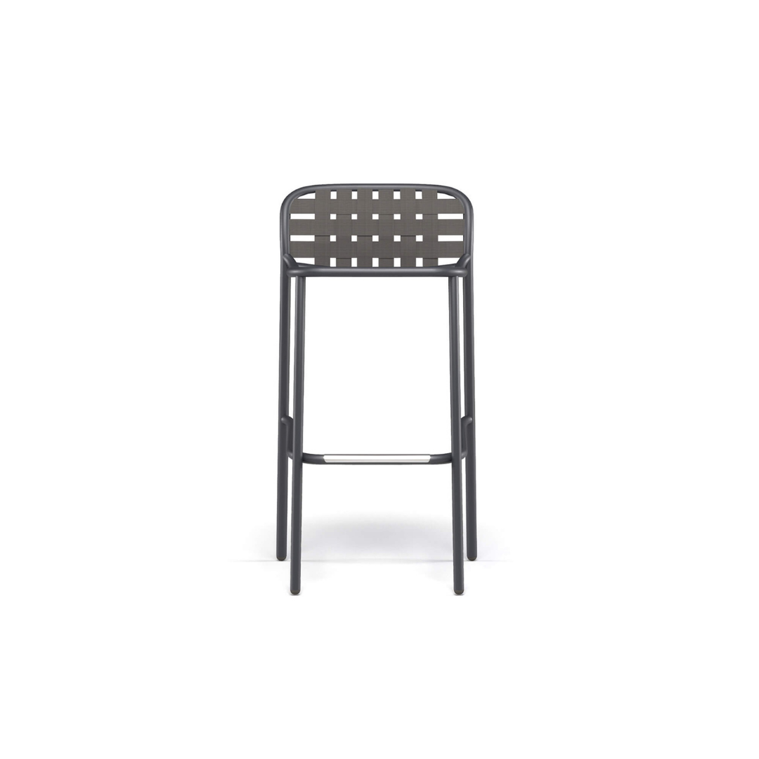 A Yard kerti bárszéket a szövött elasztikus pántok teszik különlegessé, amelyek innovatív módon kapcsolódnak az alumínium vázhoz. Ez a stílusos és kényelmes szék tökéletesen alkalmas a kültéri használatra. A Yard kültéri kollekció asztalokat, étkezőszékeket és kanapékat is tartalmaz.