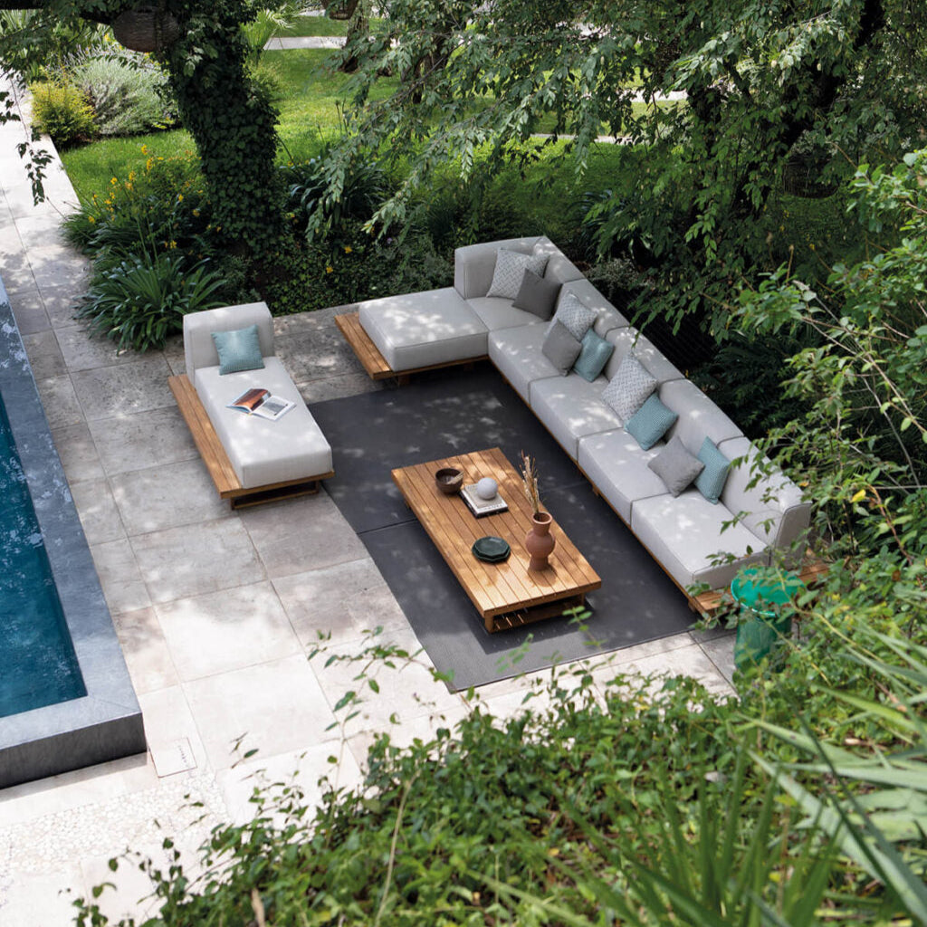 A Zero egy sokrétű moduláris ülésrendszert képvisel. A 9 alapmodul konstruktív egyszerűsége lehetővé teszi, hogy számos kompozíciós megoldást alkalmazzunk a különböző térbeli és funkcionális igények kielégítésére. A szerkezetek kilenc darab, egyenként kilenc centiméter hosszúságú, csiszolt és olajozott indonéz teakfából készült lécből állnak. A kárpitozás vízelvezető anyagból készült, mindez az Atmosphera kollekció kültéri szövetével borítva.