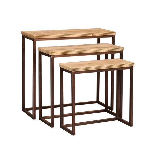 A Zoah lerakóasztal szett egy három darabból álló készlet, melyek természetes, natúr színű mangófa lapokkal rendelkezik. A keretes fekete fém váz stabil és tartós alapot nyújt, míg a felületek praktikus tárolóhelyet biztosítanak. Színei, anyagai, és megjelenése miatt könnyedén illeszkedik bármilyen környezetbe.
